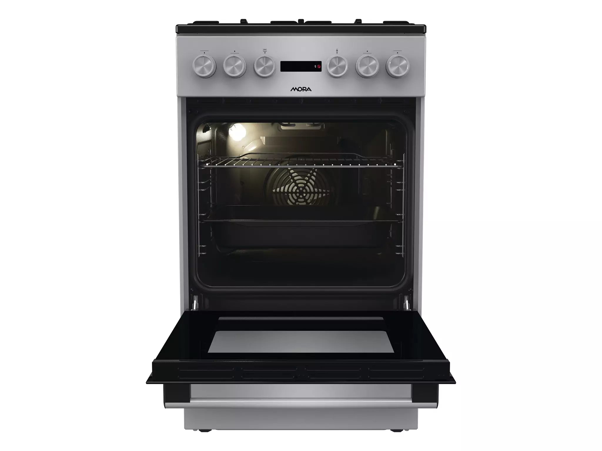Kombinovaný sporák Mora K 4255 C1S v atraktívnom dizajne INOX Look so štyrmi plynovými horákmi s poistkami STOP GAS a multifunkčnou rúrou Vás prekvapí objemom vnútorného priestoru 70 l a energeticky úspornou triedou A. Horáky sú kryté dvojdielnou mriežkou STABIL PLUS, ktorá zabezpečuje . Integrované zapaľovanie horákov je riešené priamo v samotnom ovládacom gombíku plynu, stačí iba jednou rukou otočiť požadovaným gombíkom a elektrická iskra automaticky zapáli plynový horák. Výkonná multifunkčná rúra má celkom deväť rôznych programov, napr. horné a dolné výhrevné teleso s možnosťou ventilátora alebo bez, gril či obzvlášť šetrné rozmrazovanie, ktoré Vám ušetrí naozaj veľké množstvo času.