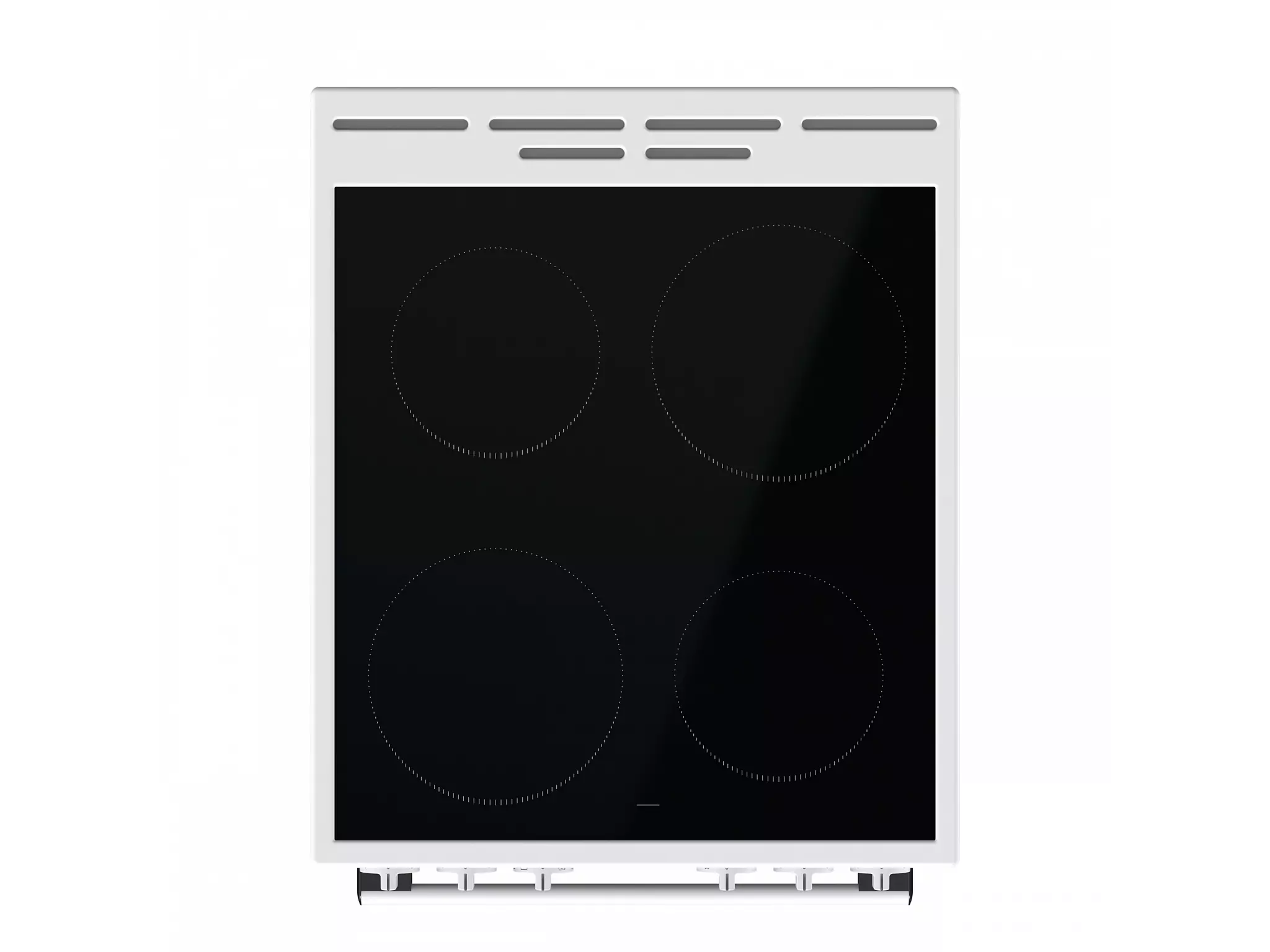 Elektrický sporák C 5247 BW v bielom prevedení so sklokeramickou platňou a multifunkčnou rúrou energeticky spadá do úspornej triedy A. Materiál použitý na varnú dosku je tepelne odolný, ľahko umývateľný a vydrží záťaž až 100 kg as ukazovateľom zvyškového tepla na doske ste chránení pred nepríjemným popálením inými nehodami. Výkonná multifunkčná rúra s objemom 70 l má celkom osem rôznych programov s presnou reguláciou teploty v rozmedzí 50-275 °C. Medzi funkciami nájdete horné a dolné výhrevné teleso, kruhové teleso s ventilátorom či program Pizza. Teplovzdušné pečenie umožňuje piecť vo viacerých vrstvách naraz aj rôznych druhov pokrmov, kedy pri pečení nedochádza k vzájomnému ovplyvneniu odlišných chutí a vôní napríklad mäso s pečivom. Nové bezpečné závesy dvierok zaručujú bez Vašej asistencie veľmi tiché a šetrné zatváranie dvierok trúby. Na zvýšenie komfortu obsluhy je rúra vybavená teleskopickým výsuvom, ktoré umožní bezpečnú manipuláciu s pripravovaným jedlom bez toho, aby ste ho museli z rúry vytiahnuť. Celý priestor rúry je osvetlený pre väčšiu prehľadnosť o stave pokrmu. V spodnej časti sporáka je praktický úložný priestor, do ktorého ľahko uložíte príslušenstvo v podobe roštu a MAXI pekáča XXL s objemom až 8 l.